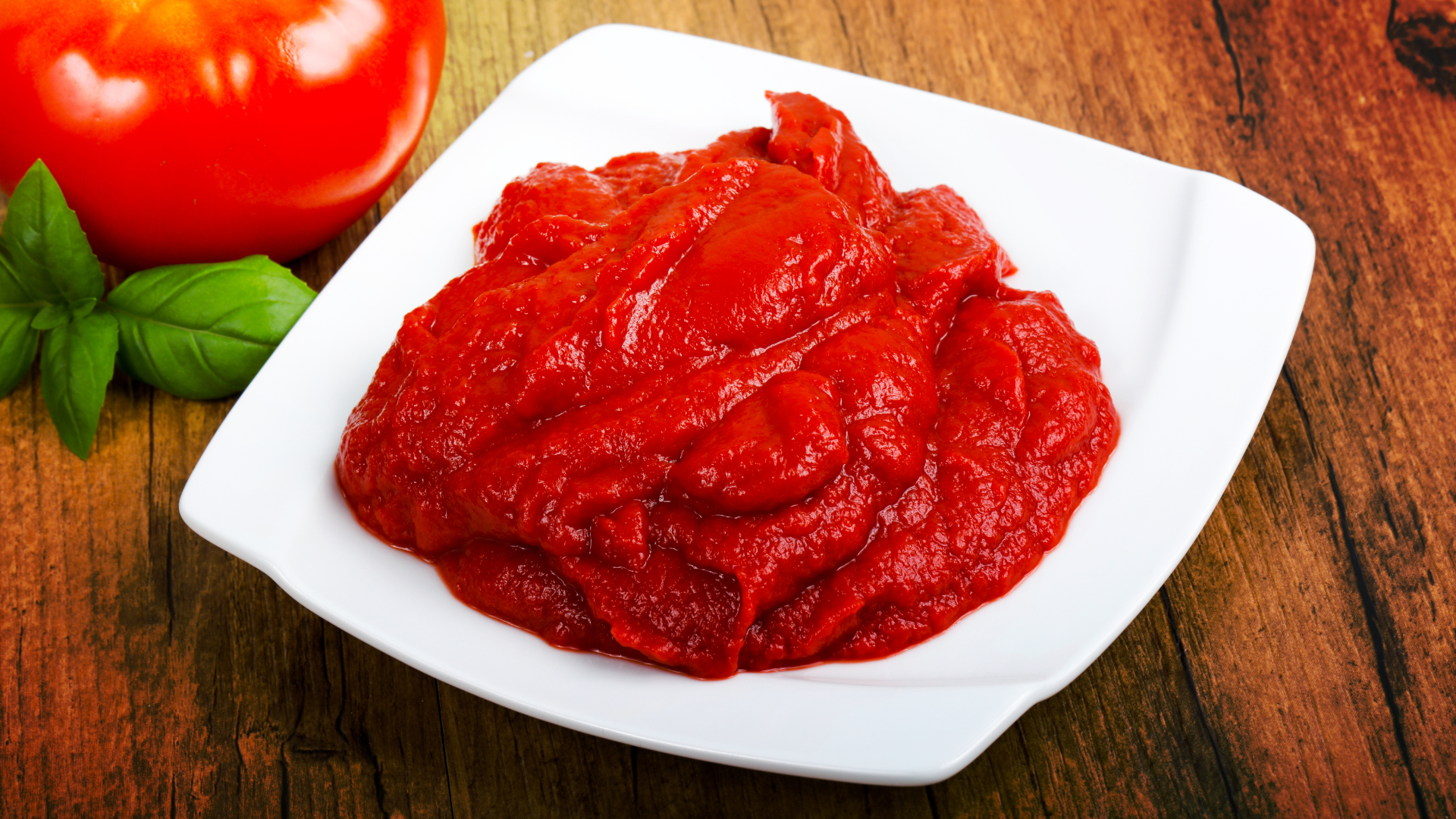 토마토 페이스트는 토마토를 오랫동안 가열하여 수분을 최대한 증발시켜 농도를 높인 농축 제품이에요.