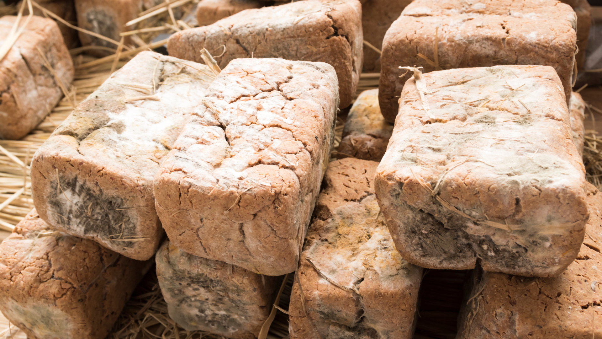 잘 띄워진 메주는 겉은 마르고 속은 노란빛 혹은 약간의 갈색을 띠며 구수한 냄새가 나요.