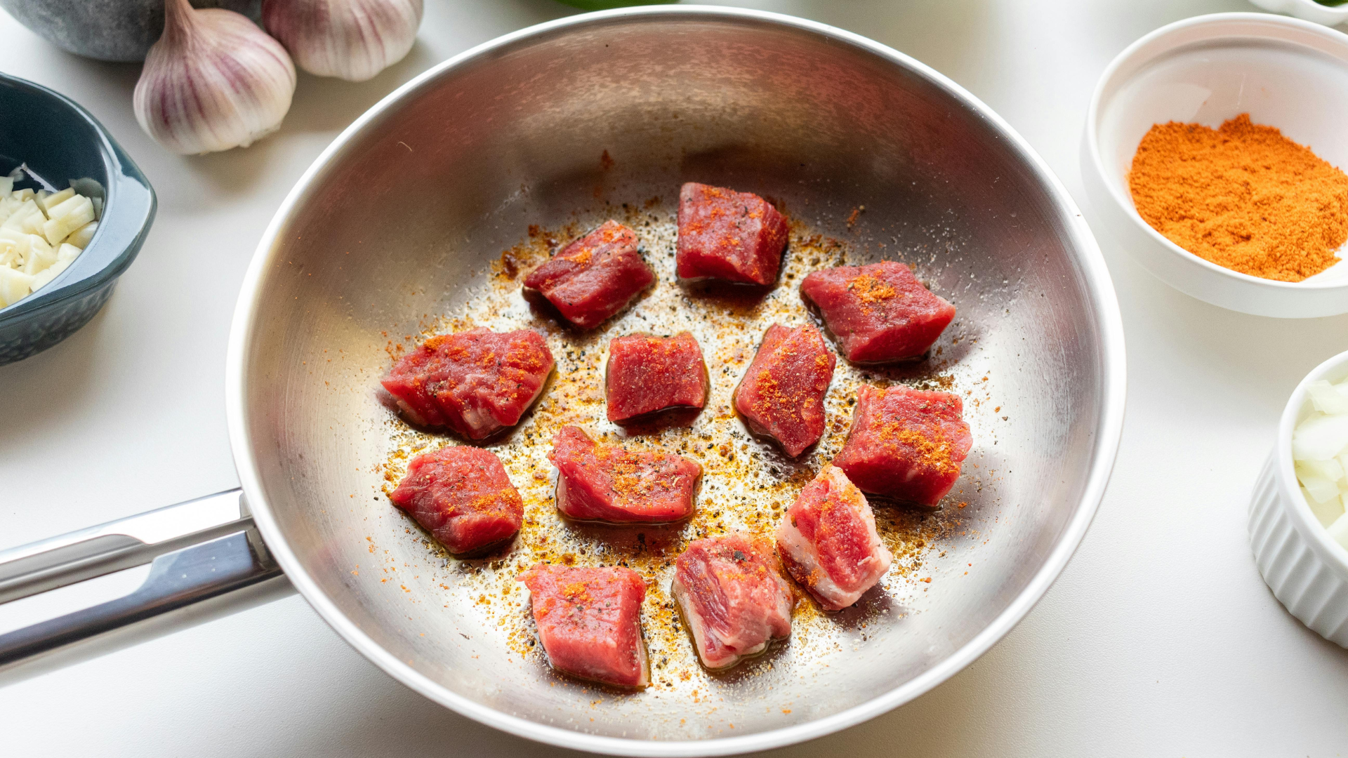 열 보유력이 좋은 무쇠 팬이나 스테인리스 팬을 사용하면 고기를 올렸을 때 온도가 급격히 떨어지는 것을 방지할 수 있어요.