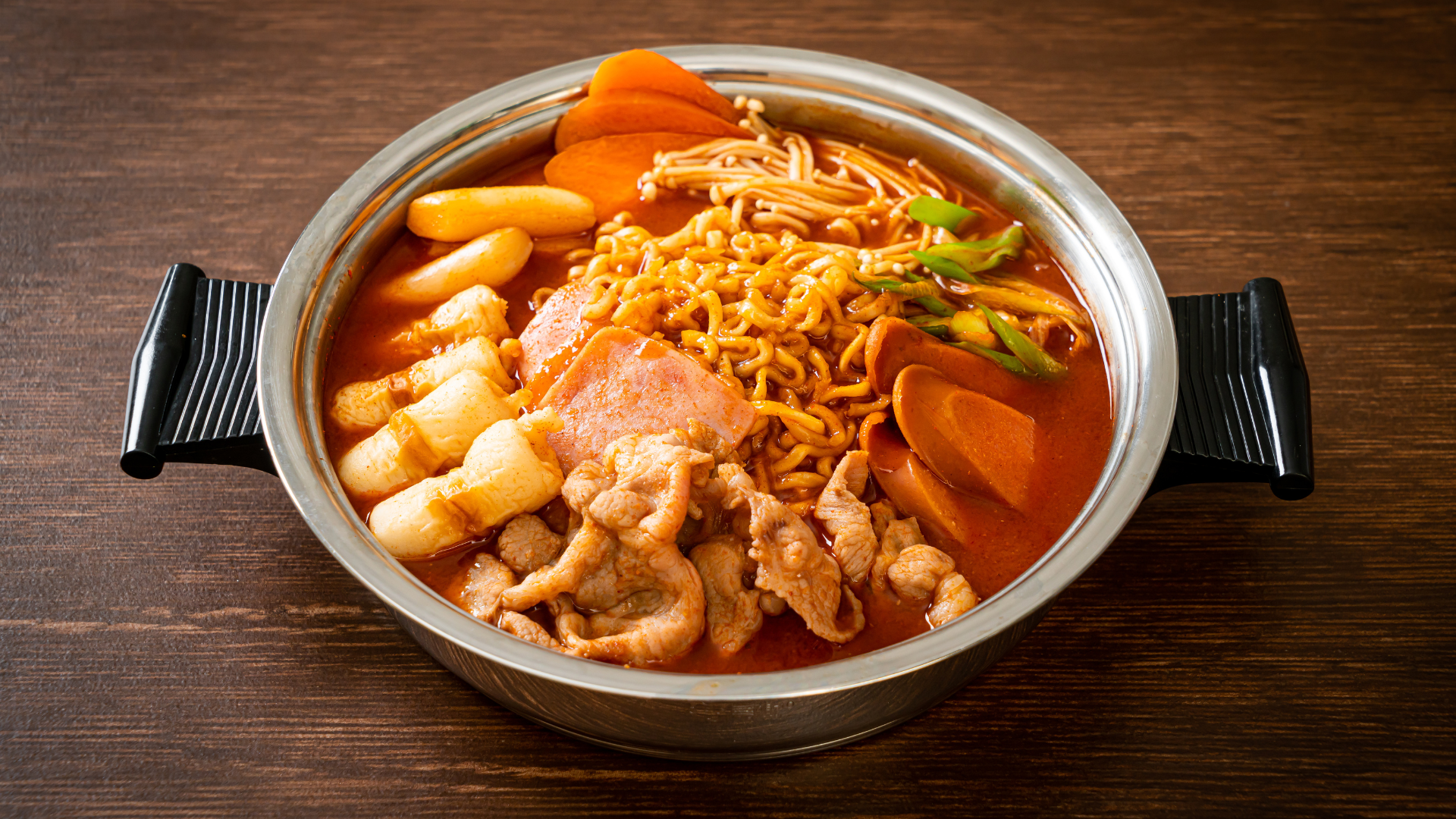 '부대(Army)'라는 이름에서 알 수 있듯이, 6.25 전쟁 직후 먹거리가 부족하던 시절 미군 부대에서 흘러나온 햄, 소시지, 베이컨 등을 한국식으로 끓여 먹던 것에서 시작되었어요.