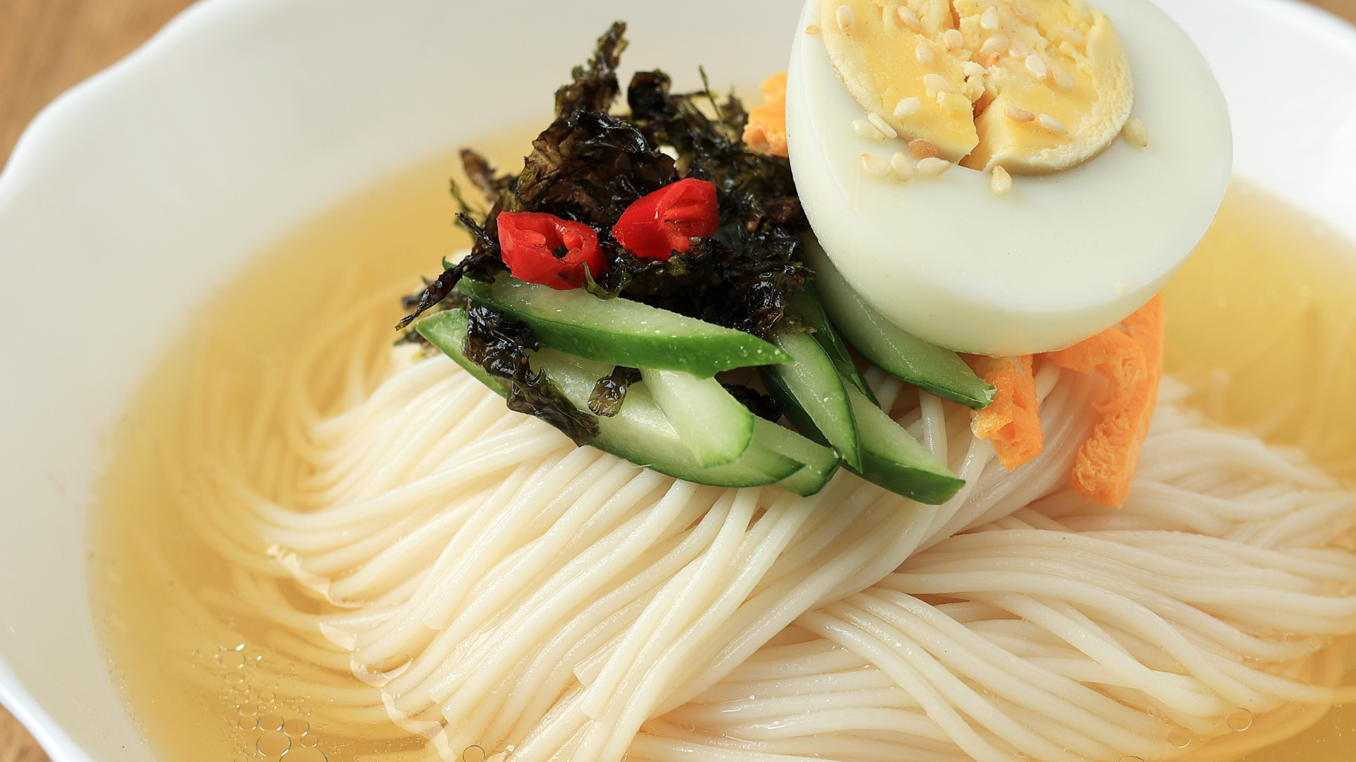 냉면: 차가운 육수나 비빔 양념에 먹는 물냉면, 비빔냉면